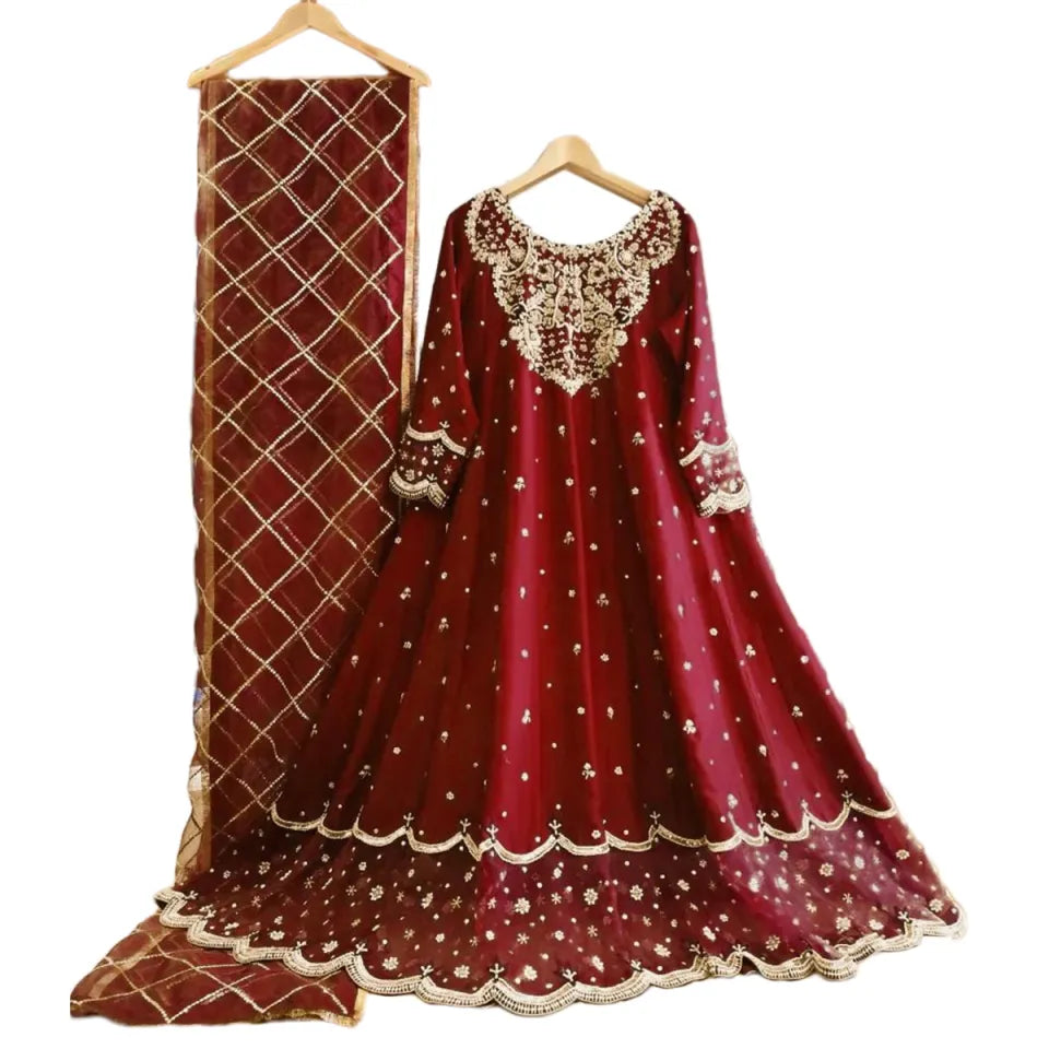 Embroidered Maxi Dress – Shamose Silk 3-Piece with Dupatta for Women