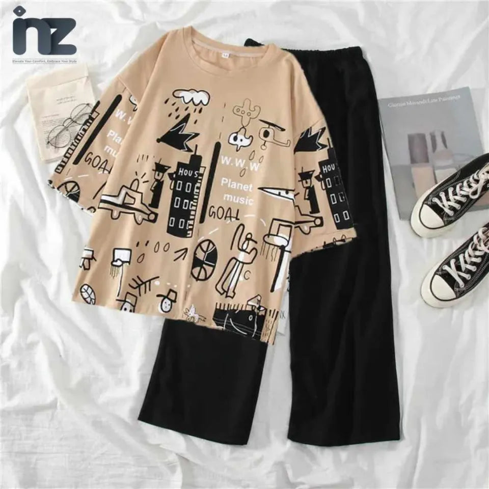 Women oversized Relax In Comfortable Printed T-Shirts and trouser for Girls